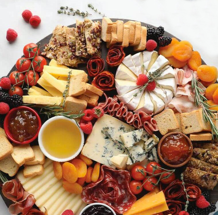 Formaggi di ovini e bovini accompagnati con miele e salse di marmellata stagionale.